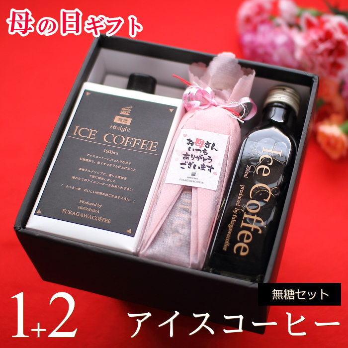 【商品名】 深川珈琲 石焼焙煎アイスコーヒー 無糖 セット(1000mlパック×1本、200mlビン×2本)(母の日ラッピング仕様)
