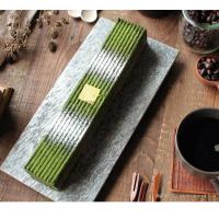 見た目も素敵な細長の抹茶スイーツ。切り分けやすい細長のスイーツ。濃い抹茶の味わいと、チョコレートの風味、なめらかな生地とナッツのさくさく感がお楽しみいただけるスイーツです。