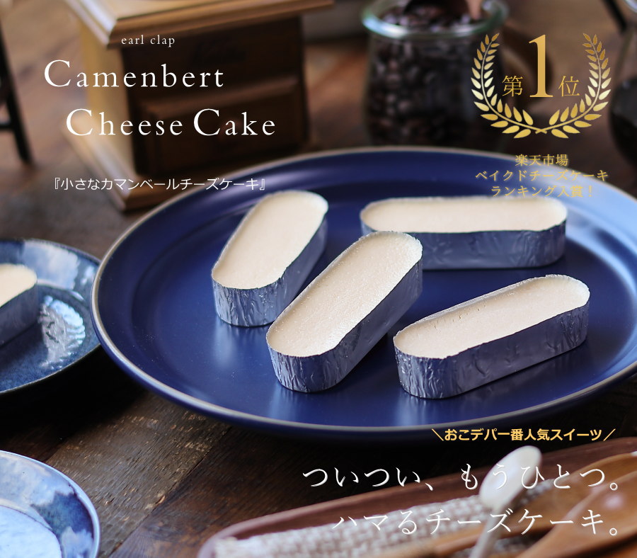 ハマるチーズケーキ。当店の不動の一番人気スイーツで、楽天市場・チーズケーキ部門ランキングで何度も1位を獲得している『小さなカマンベールチーズケーキ』をお届けいたします。