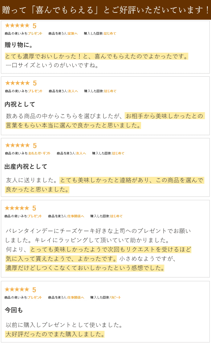 濃厚な味わい。なめらかな食感。濃厚でなめらかな口当たりのカマンベールチーズケーキ。とろける食感で、クセになる味わいが楽しめます。リピートもたくさんいただく人気スイーツです。