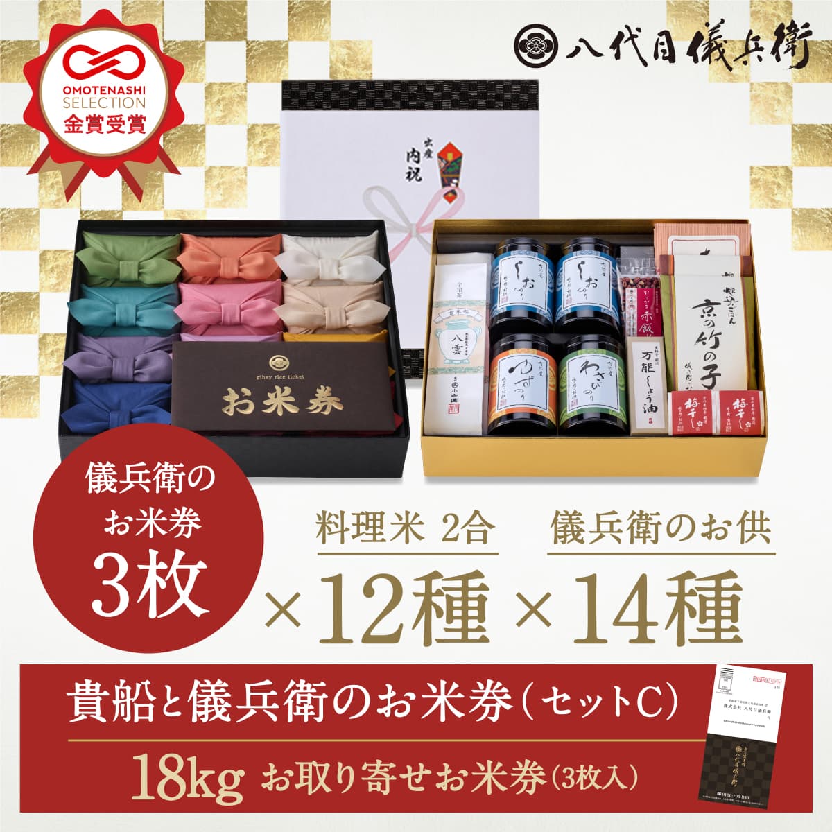 【今喜ばれる高級米】 八代目儀兵衛 送料無料 米 ギフト「十二単詰合せ貴船と儀兵衛のお米券セットC」| お米 入学内祝い 結婚内祝い 出産内祝い