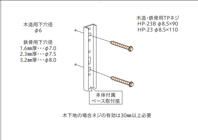 ジカ付パーツ 木下地・鉄骨への取付パーツ