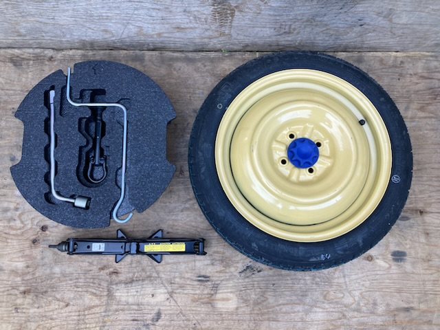 16 インチ 応急 スペア タイヤ 工具 セット ラクティス SCP100 トヨタ T125/70D16 16×4T 2005年製 ジャッキ 牽引フック 止めネジ ケース
