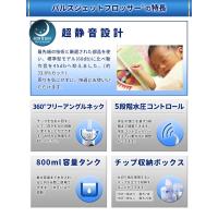 | ご使用方法 | 【ご使用になる前に】 本体の電源を入れる前に、ハンドルの「水圧コントロールバー」がOFF(一番下)まで下がっていることを確認ください。 水圧コントロールバーを上下に動かすことによって、水圧を調整することが可能です。(最大5段階まで調節可能。一番下まで引くとOFFになります。)チップ側に動かすと水圧が強くなり、チューブ側に動かすと水圧が弱くなります。水圧により、連続で使用できる時間も変化します。 ●タンク満水時の使用可能時間 最小水圧時:約8分 最大水圧時:約2分 【ご使用方法】 1.ハンドルをしっかり持ちます。 360°フリーアングルネックを左右に回すことで、チップの向きを自由に変えることができます。 2.洗面台に乗り出すようにかがみ、チップを口腔内に入れた状態で本体の電源を入れます。 3.チップから出る水が飛び散らない程度に口を開け、歯間や歯と歯ぐきの境目をなぞるように隅々まで洗浄します。 軽く口を開け、口の中にたまった水が自然に流れるようにすると、周囲に水が飛び散りにくくなります。 ※詳しいご使用方法は付属の取扱説明書をお読みください。 |