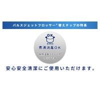 | 付属品 | ・本体 ・取扱説明書 【替えチップ】 ・ワンタフト(オルソ)チップ 1本 ・ペリオチップ 1本 ・タンクリーナーチップ 1本 ・ジェットチップ 2本 ・歯ブラシチップ 1本 替えチップのみの販売も行っております。 |