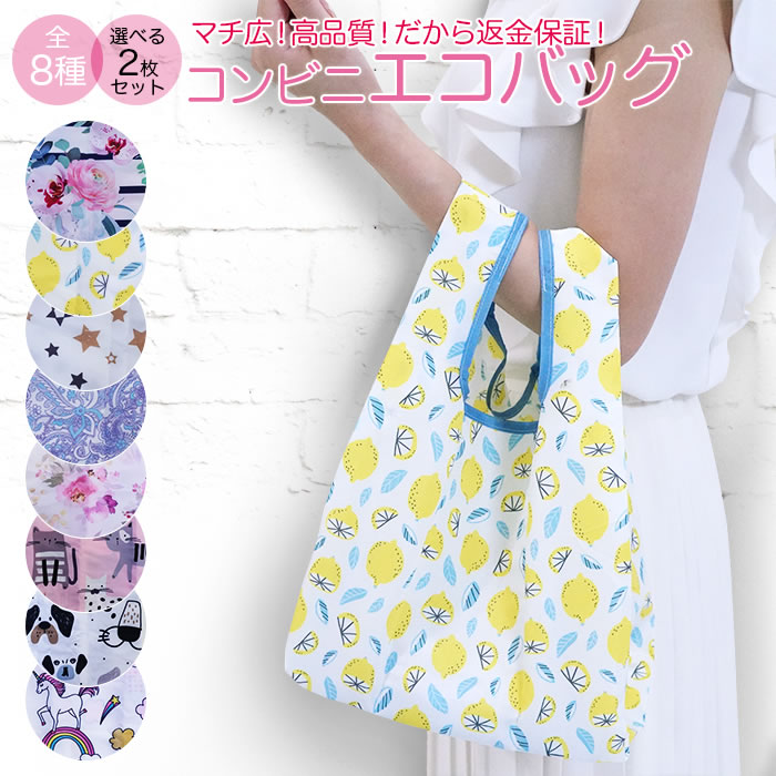 エコバッグ マチ広 2枚セット コンビニサイズ 折りたたみ コンビニバッグ レジバッグ コンパクト お買い物バッグ おしゃれ レジ袋 ECOBAG