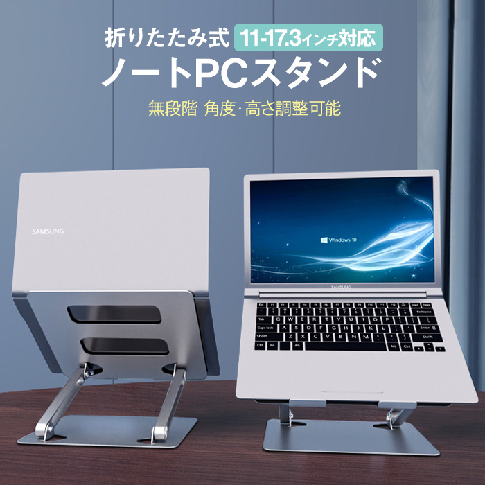 | ポイント | 折りたたみ式で持ち運びも簡単!便利!ノートパソコンスタンド!角度・高さを無段階で調整可能!好みの高さと角度に調整して、楽な姿勢でパソコン作業が出来るので体が疲れにくい!空洞デザインで放熱性に優れているので熱がこもりにくい!17.3インチまで対応!PCだけでなくタブレットスタンドとしてもお使い頂けます。 |