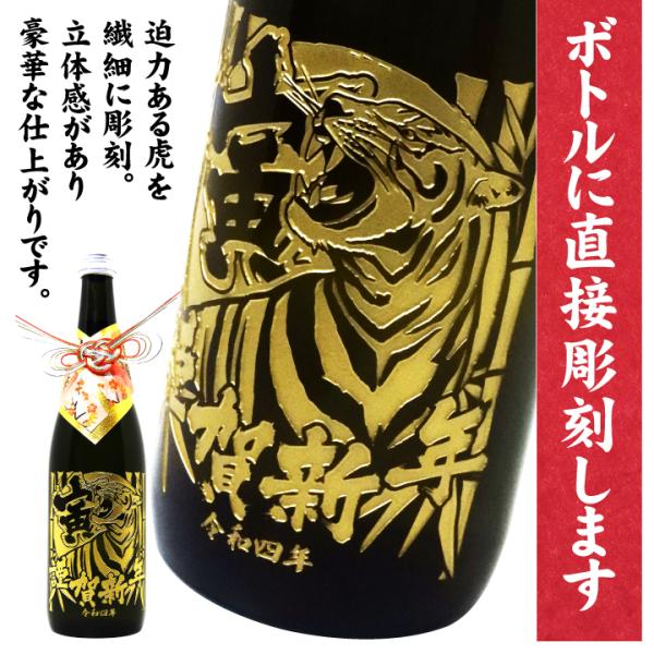 迫力のある寅をボトルに直接彫刻し、ゴールドのカラーで仕上げました。