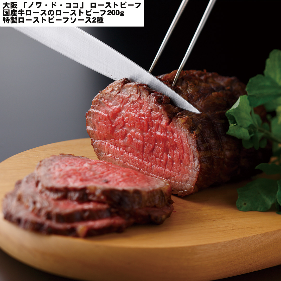 【商品名】大阪 ノワ・ド・ココ ローストビーフ 国産牛ロースのローストビーフ 特製ローストビーフソース2種 熟成ソース 玉葱わさびソース 【産直・メーカー直送品】