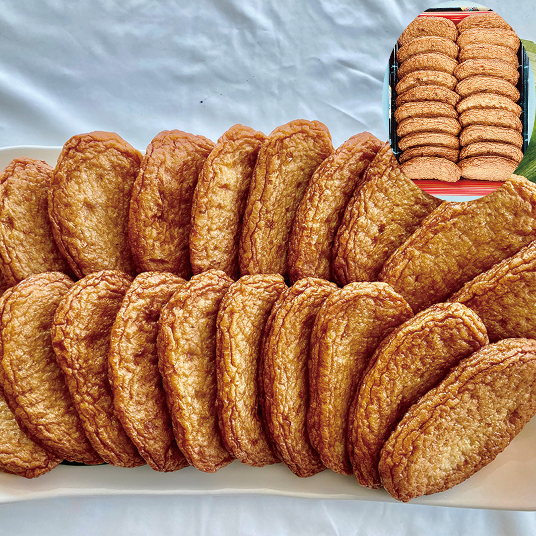 白身魚のすり身を昔ながらの石臼製法でじっくり練り上げていくことで、魚の小骨も一緒にすりつぶして作られています。エソ、イトヨリ、タチ、タラ等のすり身にはカルシウムが多く含まれており、体内に吸収しやすくするたんぱく質とビタミンB群が豊富です。薩摩地方独自の地酒等を加えながら、職人が時間をかけてすり身のみで造り上げるソフトでまろやかな味の逸品です。