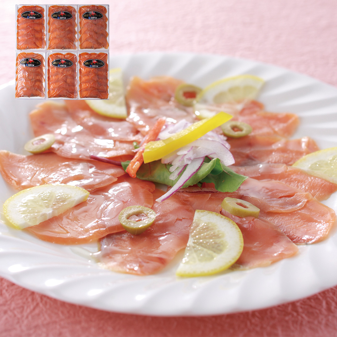 【商品説明】北海道産秋鮭をヒッコリーチップでスモークし、熟成した鮭の旨味を引き出した使いやすくスライスタイプのスモークサーモンと北海道産秋鮭の刺身をオリーブオイル漬けにしスーモーク風味にしたサーモンオリーブ。洋風のサーモンオードブルをセットです。サラダ、オードブル、冷製パスタなど、お客様のアレンジで様々な料理に使えます。