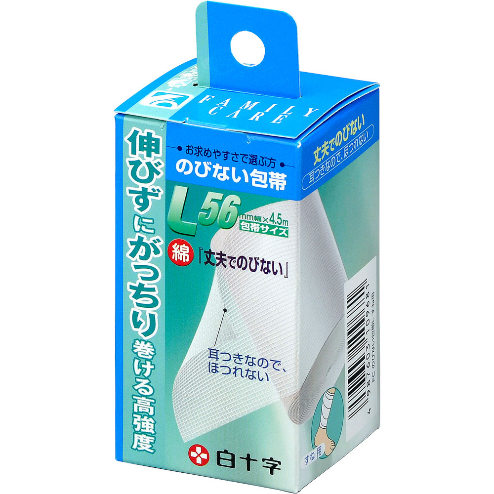 | 特徴 | ○のびないので、しっかり固定したい時に便利です。 ○耳付きですのでホツれません。 ○経済的で様々な用途に使えます。 | | 内容量 | 1巻・5.6cm×4.5m | | 販売者 | 白十字株式会社 〒171-0033 東京都豊島区高田3ー23ー12 | | 用途 | 包帯 |