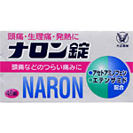 【商品説明:】○ナロン錠は、頭痛・歯痛・生理痛等でお悩みの方の解熱鎮痛薬です。アセトアミノフェン・エテンザミドの解熱鎮痛作用、ブロモバレリル尿素の鎮静作用により、これらの痛みを効果的にしずめます。