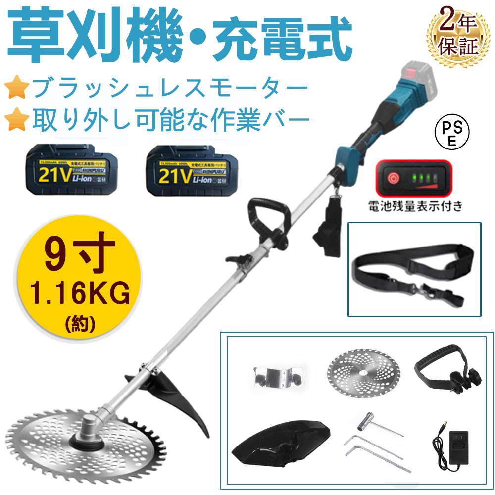 草刈機 充電式 電動草刈機 草刈り機 9インチ マキタ バッテリー互換 ブラシレスモーター 刈払機 替刃付き コードレス 多機能 刈払機 枝切り 軽量 芝刈り機 2025