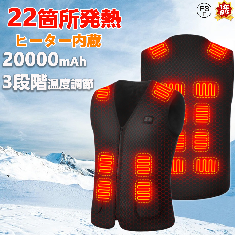 電熱ベスト ヒーターベスト バッテリー 速暖 3段階調温 22箇所発熱 充電式 電熱ウェア 発熱 防寒着メンズ レディースアウトドア 水洗い可能 男女兼用 2024新品