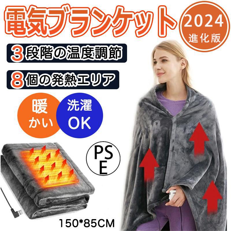 電気毛布 掛け毛布 発熱 電熱 ひざ掛け 大きめ 肩掛け 8発熱ヒーター 150*85cm 3段階温度調節 電気ブランケット 5way仕様 ファスナー付き USB給電式 肩掛け 2024