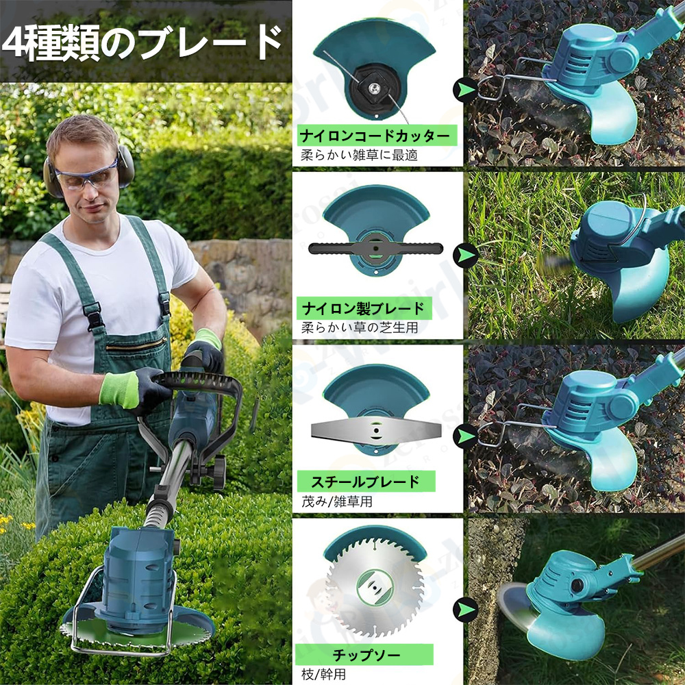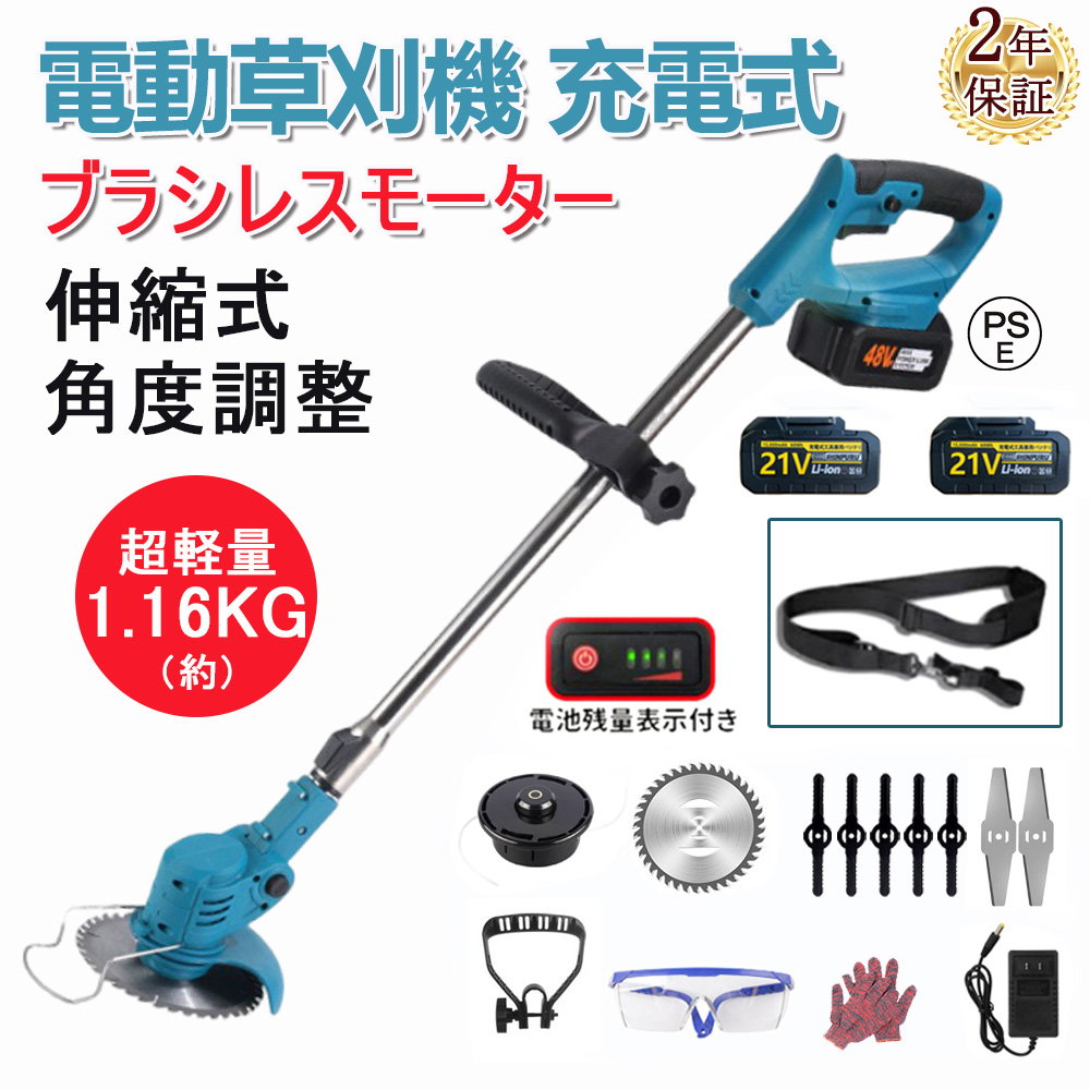 草刈り機 草刈機 充電式 電動草刈機 コードレス バッテリー21V互換 刈払機 3種類替刃 伸縮式 替刃12枚付き 女性 軽量 家庭用 PSE認証 2025 即納