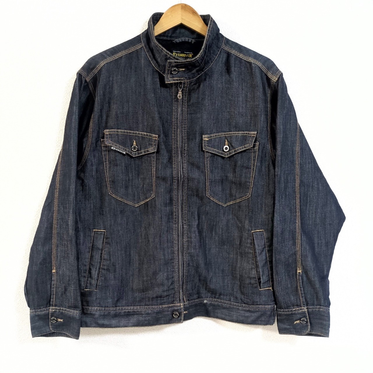 (^w^)b EVEN RIVER イーブンリバー デニム ジャケット ブルゾン ワーク アウトドア 薄手 軽量 カジュアル 作業着 ロゴ 紺 LL/Y11015HH