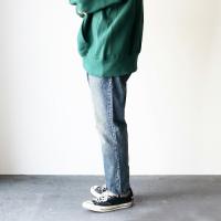 新しく始まったSancaより定番の15.5OZ DENIM TAPERED 5Pです。こちらは程よくユーズド加工を施した新色です。 やや厚手のガシッとしたデニム生地を使用しています。 太もも辺りまではゆとりをとり、膝から下にかけて強くテーパーさせたシルエット。 程よくゆとりがありながらも、スッキリとした綺麗なシルエットです。 レングスも短めに設定しているので丈直しもいらず、ロールアップでまかなえます。 ロングコートやオーバーサイズのトップスとの相性も抜群です。 長くご愛用いただける一本です。 ユニセックスで着用いただけます。 | ||||