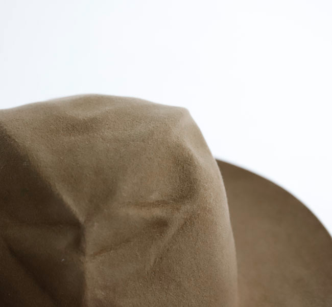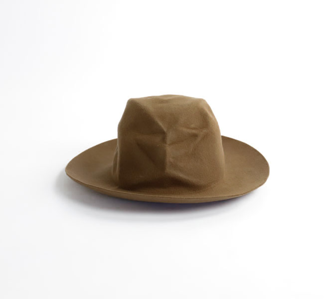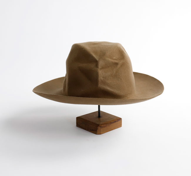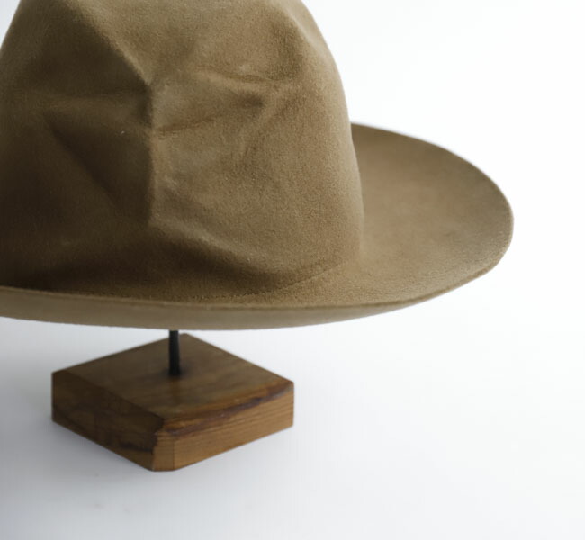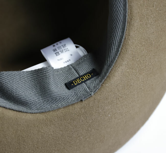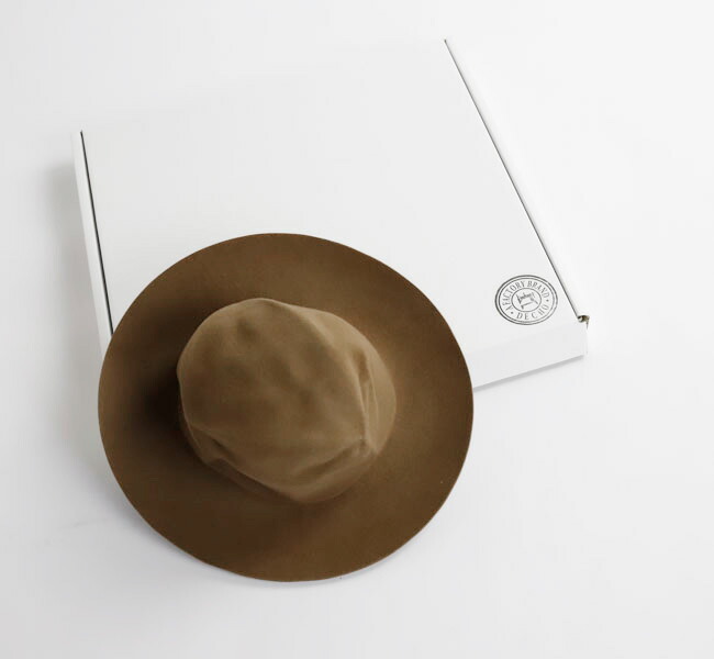 DECHO入荷です。上質なウール素材を使用したフェルトハットです。 帽子を整形後、さらに潰した状態で加工し、独特なシワ感を演出しています。専用のBOX付き。