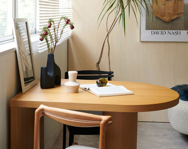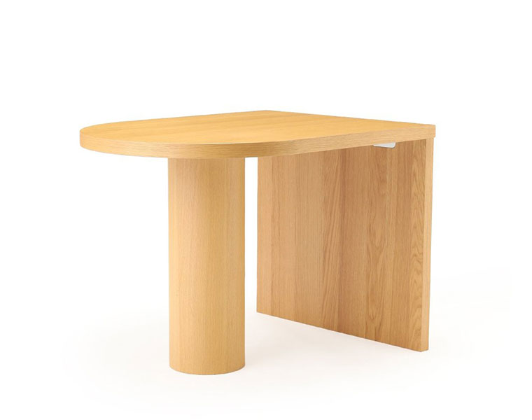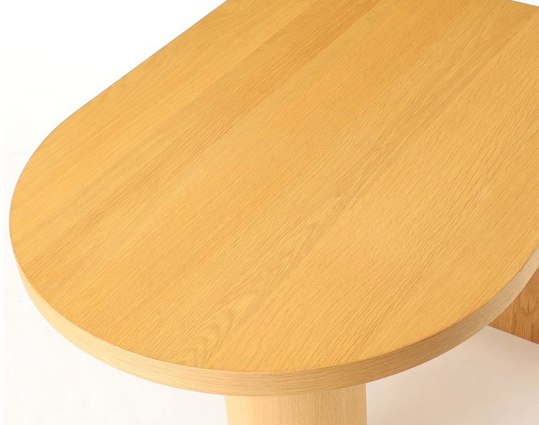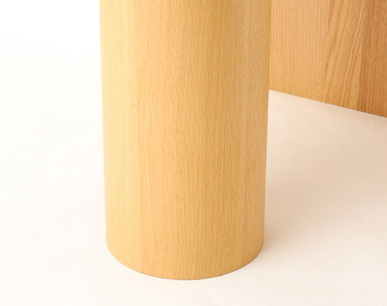 人気のPORTO DINING TABLEにスモールサイズが新登場! ペニンシュラ型の天板と円柱の脚が特徴的なデザインのダイニングテーブル。 横幅は100cmという、一般的には2人掛けのサイズですが、3人〜4人の大人数での着席が可能。 アイディア次第で様々な使い方・囲み方ができるテーブルです。 片側を壁に付けてご使用いただくのはもちろん、壁から離していただいても空間に変化が生まれ、コーディネートを楽しんでいただけます。 円形部分の木口にも無垢材を使用し、見た目だけではなく、長く安心してご使用いただけるようにというデザイナーの想いが詰まっています。 重量は少し重くなっていますが、脚に重量を持たせることで安定感を増し、安心してご使用いただけます。 脚は面で設置した方が安定するため、アジャスターは出さずにご使用いただくことを推奨しております。 面設置で安定しない場合のみアジャスターを出してご使用ください。