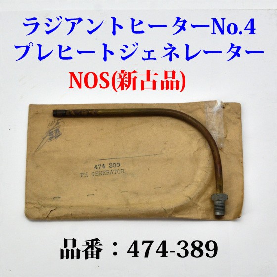 ラジアントヒーターNo.4のプレヒートジェネレーター、品番:474-389、1930年代のNOS(新古品)です。ヒーターを点火する際に、プレヒート用として点火するためのジェネレーターです。大変希少なパーツです。ランプ・ランタン用のQ99の丸を伸ばした感じの形状ですが、ガスチップは"N"と聞いたことがないサイズです。