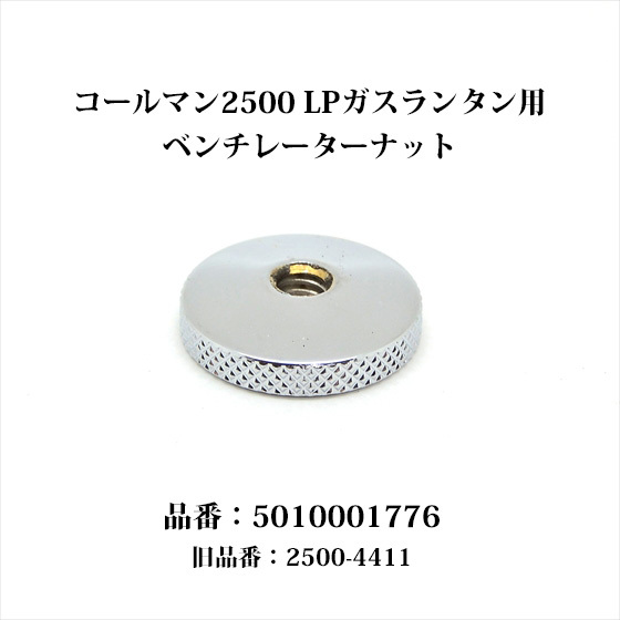 コールマン ノーススター2500 LPガスランタン用のベンチレーターナットです。写真4-5枚目の通り、2000ガソリンランタンでも固定金具なしをご了解頂ければ、使用できます。