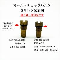 このOリングの役目は、チェックバルブをきつく締めなくても確実に密閉してくれることです。ゆえに刃の浅い現行チェックバルブレンチや大き目のマイナスドラーバーでも、力を入れなくても、溝を舐めることなく脱着が可能です。そのためのリングです。尚、装着時には「きつく」締めず、程よい加減で止めてください。締めすぎるとつぶれたり、切れます。