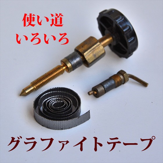 グラファイトテープ、日本製、サイズは約長さ35cm+おまけ、幅10mm、厚さ0.5mmで、巻きやすいようにギザギザに加工しています(ギザギザ模様は写真とは異なります)。また、柔らかい素材なので手で簡単に切れます。ランタンやストーブなどの燃料系シール材として、いかがでしょうか? 尚、テープ部分に接着面はございません。理由は後述しています。