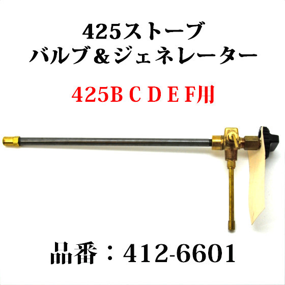 コールマン425系ストーブのバルブ&ジェネレーターセット、品番:412-6601です。425B 425C 425D 425E 425Fのコンパクトツーバーナーストーブに適合しますが、425ファーストモデルのみ適合しません。炎が今ひとつの場合やバルブを閉めても炎が消えない場合、バルブに問題がある場合がほとんどです。交換パーツまたは予備に、この機会にいかがでしょうか?