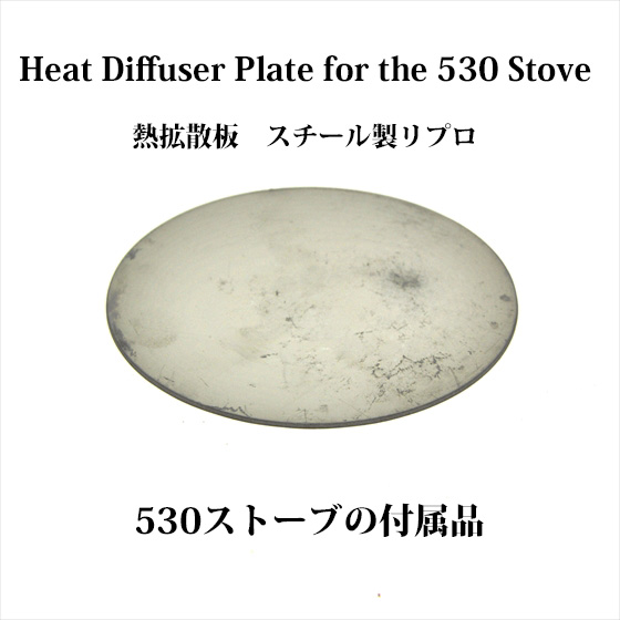 コールマン530 GI ポケットストーブ用のヒートディフェーザープレート(熱拡散板)、スチール製、約90g、リプロ品です。530入手時、たいていは欠品していますが、当時の付属品でした。