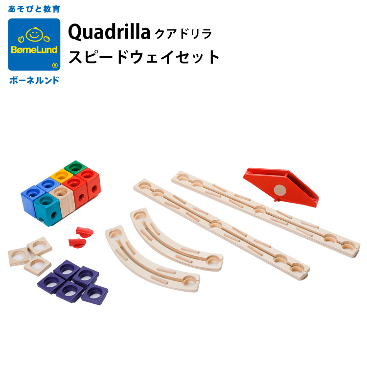 | 商品説明 | 《 ビー玉転がし「クアドリラ」に追加して、大きな作品をつくろう 》 何種類ものレールやブロックを組み合わせて、オリジナルのビー玉転がしを作り上げる「クアドリラ」に追加できる、各種少量入ったパーツのセットです。 「クアドリラ スピードウェイセット」は、ブロックやカーブレール、ビー玉の動きに時間差を作ることができるシーソーなどが入ったセット。 「クアドリラはすでに持っているので、パーツを増やしてもう少し大きくしたい」「動きのバリエーションを増やしたい」など、組み合わせるセットによってクアドリラの新たな世界が広がります。 |