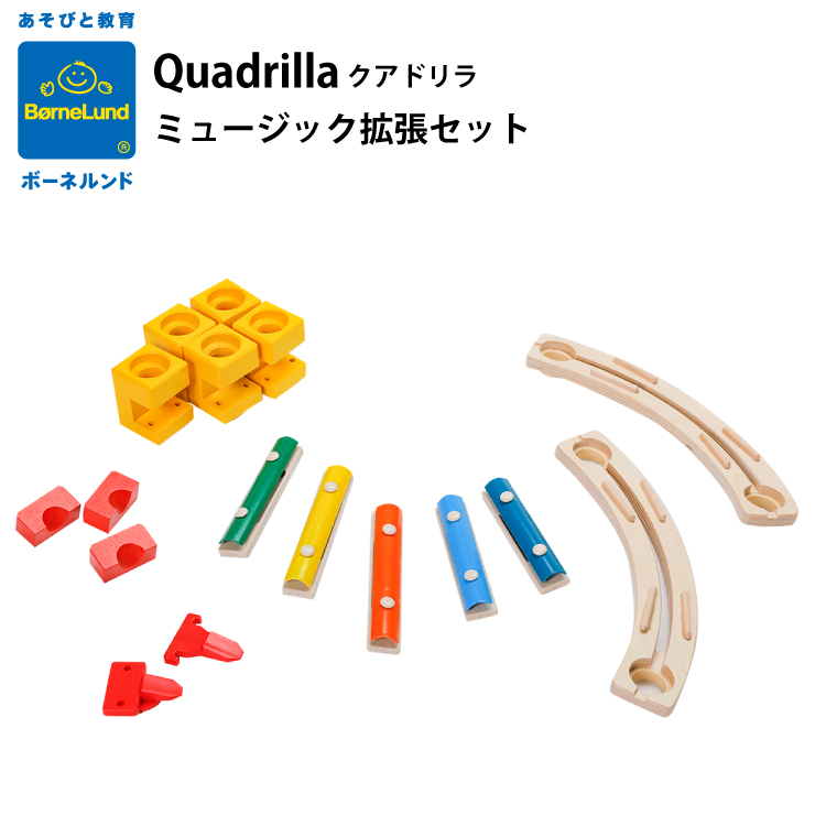 | 商品説明 | 《 ビー玉転がし「クアドリラ」に追加して、大きな作品をつくろう 》 何種類ものレールやブロックを組み合わせて、オリジナルのビー玉転がしを作り上げる「クアドリラ」に追加できる、各種少量入ったパーツのセットです。 「クアドリラ ミュージック拡張セット」は、ブロックやカーブレール、ビー玉が通過すると音がなる鉄琴のパーツなどが入ったセットなので、「クアドリラはすでに持っているので、パーツを増やしてもう少し大きくしたい」「動きのバリエーションを増やしたい」など、組み合わせるセットによってクアドリラの新たな世界が広がります。 |