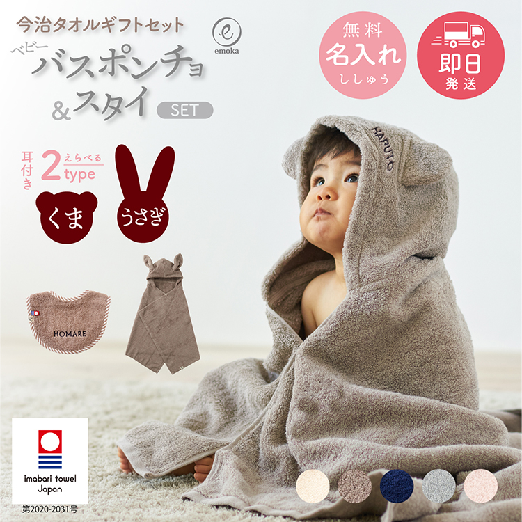 | 商品説明 | 「生まれてすぐ」から「長く」使える 今治タオルのギフト<2点>セット! emokaの人気商品「スタイ」「バスポンチョ」が組み合わせになったセットです。 日本一のタオル産地『愛媛県今治市』で生産されており、デリケートな赤ちゃんの肌にも使える、ふっくらやわらかな肌触りが特徴です。 |