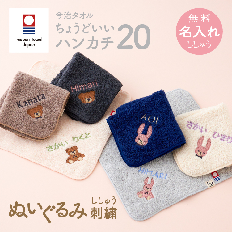 | 商品説明 | 『名入れ刺繍 ちょうどいいハンカチ20』は日本最大のタオル産地、「愛媛県今治市」で作られたタオルハンカチ Baby shopだからこその視点で、デリケートな赤ちゃんの肌にも使えるふっくら、やわらかな肌触り。 高級コットンの糸を贅沢に使用しており、タオル生地本来の素早い吸水性と柔らかい肌触りが長時間持続する特殊加工を施すことで、洗濯を繰り返しても柔らかさが長時間持続し贅沢な感触が長持ちします。 名前+ワンポイント刺繍をすることで、オリジナル商品に!! |