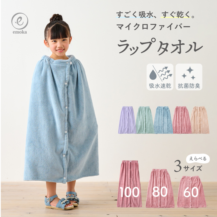 | 商品説明 | 【emoka ラップタオル マイクロファイバー】 くるまるだけでしっかり吸水。 emokaのマイクロファイバーラップタオル。 吸水速乾性に優れたマイクロファイバー素材を使用し、 お風呂上がりやプール後の水分を素早く吸収。 ふわふわやわらかな肌触りで、お子さまの体をやさしく包み込みます。 抗菌防臭加工を施しているため、汗や水分が多い季節でも清潔に使えるのも嬉しいポイント。 サイズは60・80・100の3サイズ展開で、年齢や成長に合わせてお選びいただけます。 シンプルでシックなカラー5色を揃え、男女問わず使いやすいデザイン。 お風呂上がりやプール、海水浴などさまざまなシーンで活躍するラップタオルです。 |