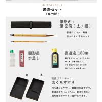 セット内容 | ・emoka 書道バッグ ・下敷き ・半紙ばさみ ・筆巻き ・筆 玄海 2本 (太筆・細筆) ・収納ケース ・固形墨 ・水差し ・軽量プラスチック ぼくちすずり ・文鎮 ・書道液 180ml |