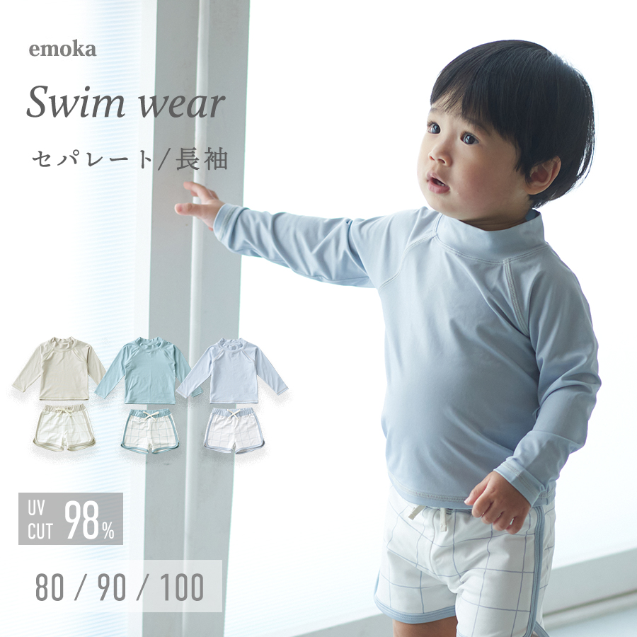 | 商品説明 | ユニセックスなデザインで、男の子にも女の子にもぴったりなセパレートタイプの長袖スイムウェア。 上下が分かれているので、お着替えやトイレもスムーズ。 UVカット率98.5%の生地を使用しており、長袖なのでラッシュガード要らずでしっかり日差し対策ができます。 シンプルで落ち着いたデザインだから、シーンを選ばず活躍。 水遊びやプール、ビーチにも最適な1着です。 |