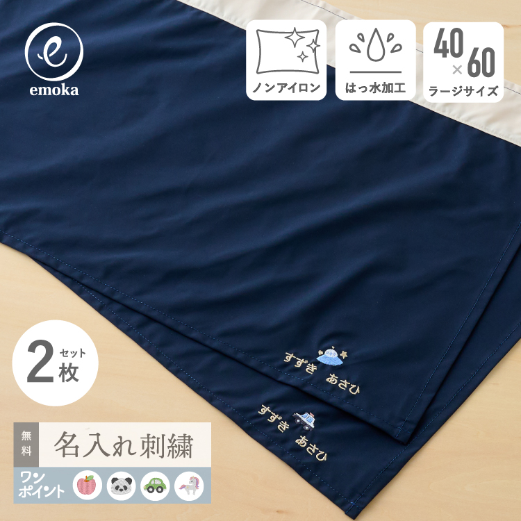 | 商品説明 | emoka ランチョンマット 2枚セット 名入れ+ワンポイント刺繍 emokaのランチョンマット2枚セットは、名入れ+ワンポイント刺繍入りの特別仕様。 お名前刺繍とワンポイントは2枚ともに入るため、洗い替え用としても同じデザインで安心して使えます。 素材はシワになりにくく、ノーアイロンで使えるイージーケア仕様。 さらに撥水加工を施しているので、飲み物や食べこぼしもサッと拭き取りやすく、給食や毎日の食事シーンにぴったりです。 デザインはシンプルでシックな無地ベースに、さりげない刺繍をプラス。 子どもっぽくなりすぎず、長く使える上品な仕上がりにしています。 サイズは約60×40cmのラージサイズで、小学校の机にちょうどよく収まります。 実用性と特別感を兼ね備えた、入学準備やギフトにもおすすめのランチョンマットセットです。 |