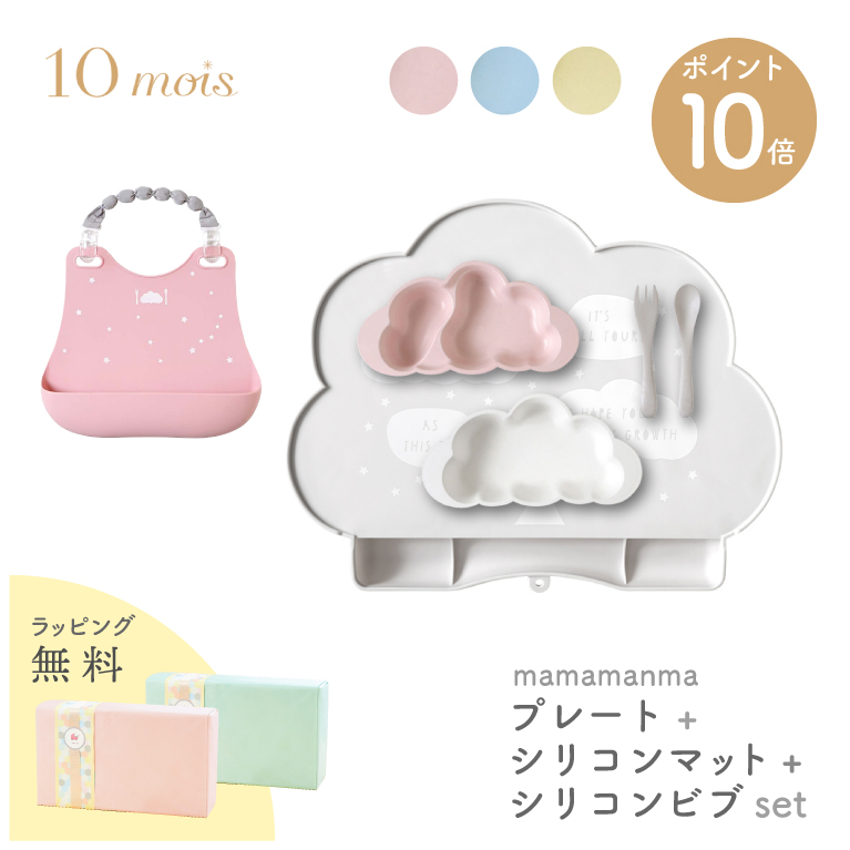 | 商品説明 | 【人気のマママンマのプレートセットとシリコンビブをセットに】 10moisの1枚皿と仕切り皿の2枚のプレートにカトラリーがついたセット 優しい色のプレートに合う淡いグレーのお食事マット お手入れが簡単なシリコン製のビブ 離乳食、キッズのおやつ皿まで長く使えるサイズ。 もくもくした雲の形はごはんがすくいやすい設計で、食べるのにも与えるにも便利なマルチデザイン! 素材のバイオマスプラスチックは原料の約52%が竹でできており、赤ちゃんにも環境にもやさしいエコロジー素材。 ご出産祝いやお食い初めのお祝いなどギフトにもおすすめです。 【 プレゼント用無料ラッピング承ります 】 |