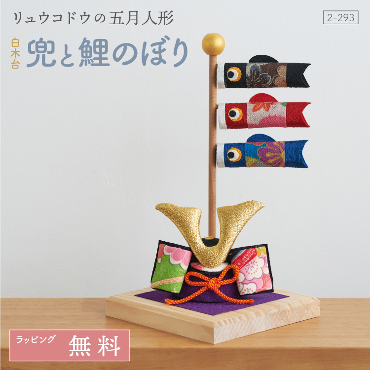 リュウコドウ 五月人形 兜 コンパクト 白木台 兜と鯉のぼり 2-293