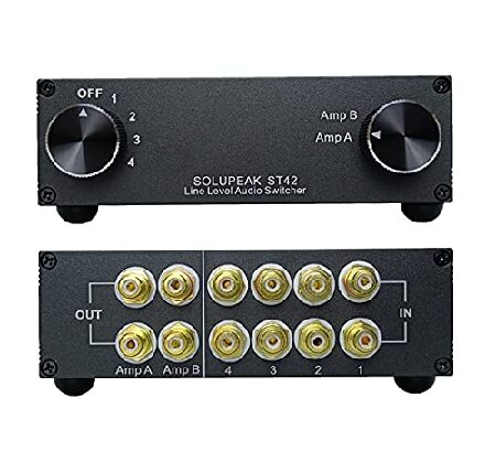 【並行輸入品】 SOLUPEAK ST42 4ウェイ RCAオーディオスイッチ ソース信号入力スイッチャー セレクター スプリッターボックス (4イン2アウト)
