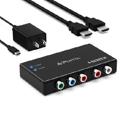 説明: Portta コンポーネント - HDMIコンバーター HDMIケーブル付き RGB - HDMIアダプター、5 RCA YPbPr - HDMIビデオコンバーター、PS2 PS3 Xbox 360用1080p 60Hz対応