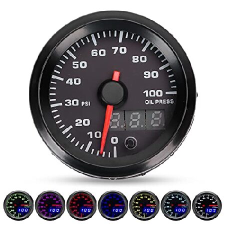 【並行輸入品】 Fydun 2 Inch Oil Pressure Gauge 0-100PSI 7 Color LED Display with Sensor, Pressure Gauge Engine Equipment Instruments Black Dial
