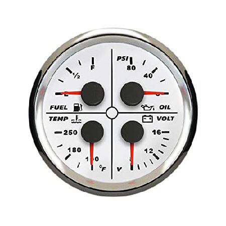 【並行輸入品】 ELING 85mm 4イン1 多機能ゲージ 油圧0-80Psi 燃料レベル 240-33ohm 水温 100-220°F 電圧計 12V レッドバックライト付き(240-33ohm-ホワイト+ス