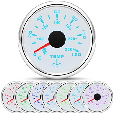 【並行輸入品】 ARTILAURA 7 Color Water Temp Gauge 2-1/16" 52mm Water Temperature Gauge 30-250? / 40-120℃ for Car Auto Boat Marine White