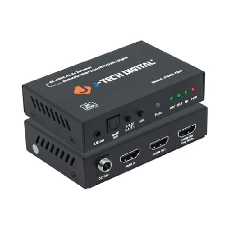 【並行輸入品】 J-TechデジタルHDMI 2.1 ARCオーディオエクストラクター 4K 120Hz 8K 60Hz、HDMI - HDMI + 光学SPDIF + 3.5mmオーディオ、HDR/HDCP 2.3対応