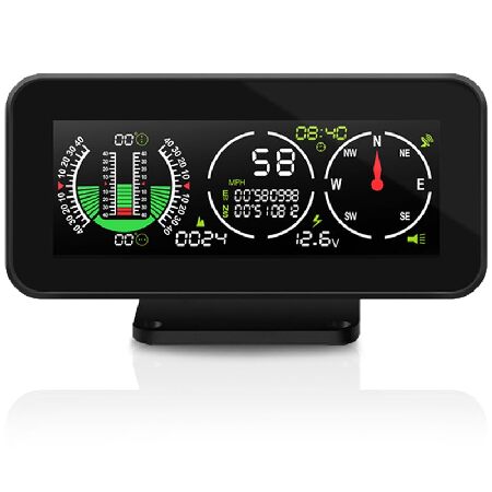 ・All-In-One Dashboard Display: Features include Speedometer, Tilt Angle (Roll & Pitch), Battery Voltmeter, Satellite Time, Compass, Altitude, Coordinates, and Speed/Fatigue Driving Alerts; Precise 6-axis gyroscope ensures accurate readings