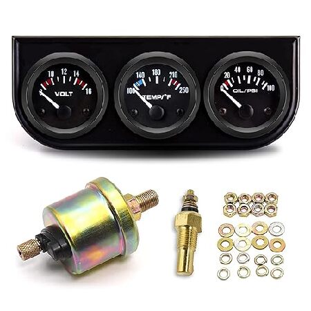 ・Package Included 1 x Volt Meter+Water Temp+Oil Pressure Meter Gauge .1 x three hole gauge bracket .1 x sensor. 1 x 1/8" NPT sensor thread. 1 x installation instructions.Easy installation, suitable for professional use.
