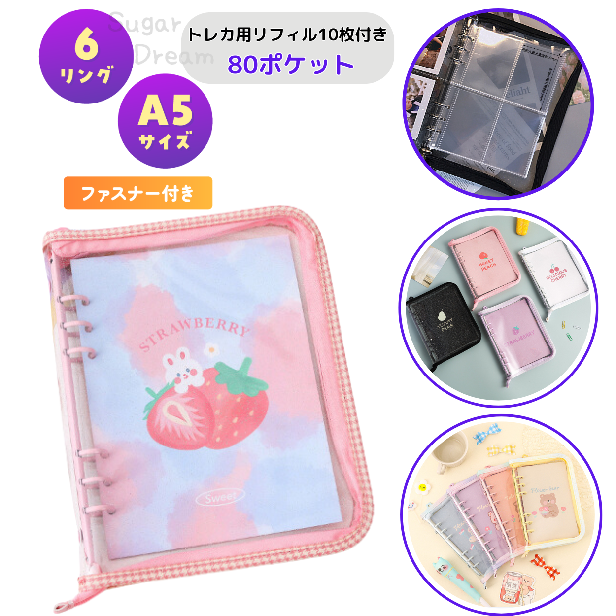バインダー A5 6穴 おしゃれ トレカ コレクトブック 押し クリア ラメ ファスナー付き インスタ グッズ収納 チェキ 韓国 KPOP